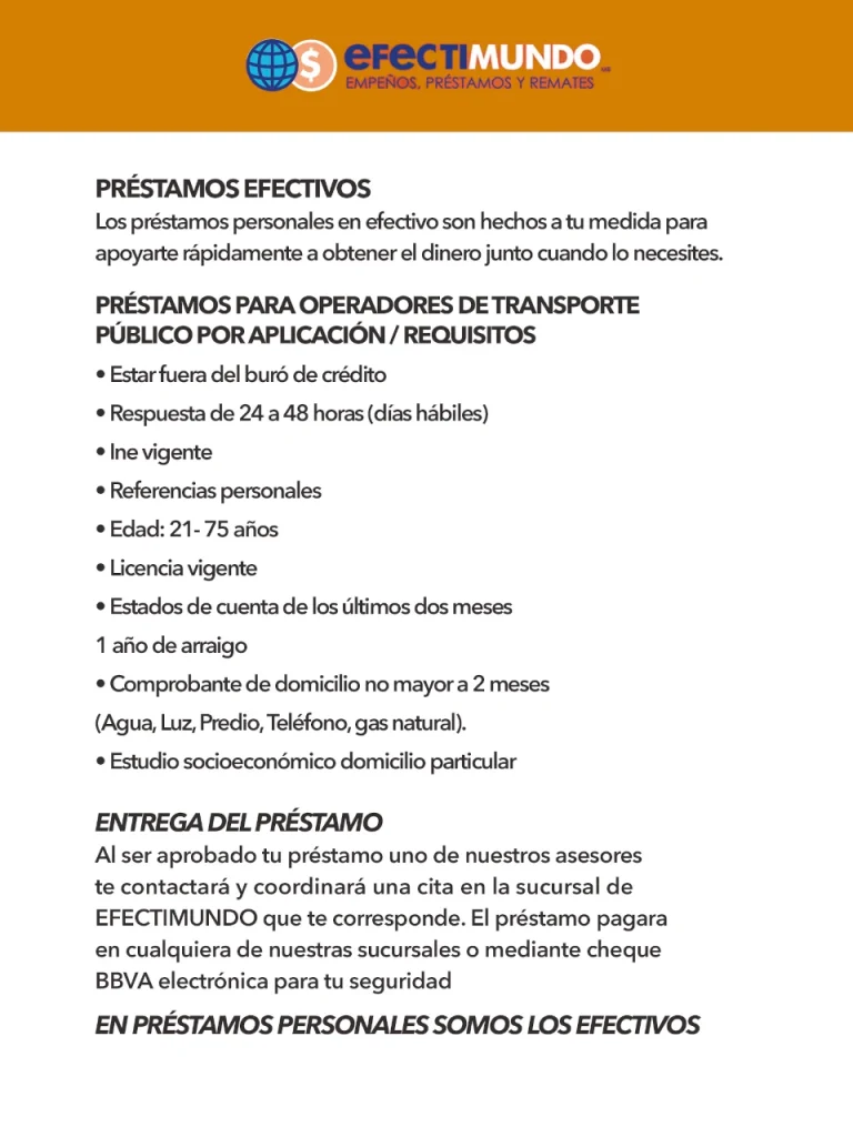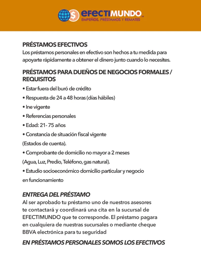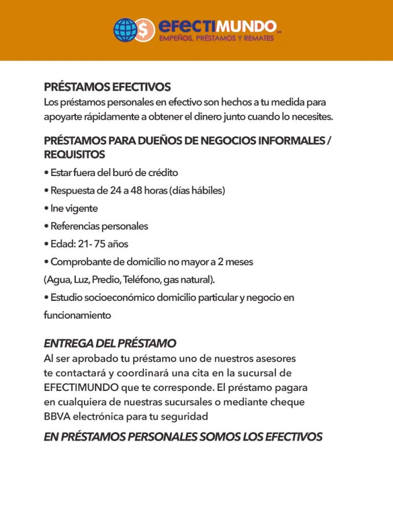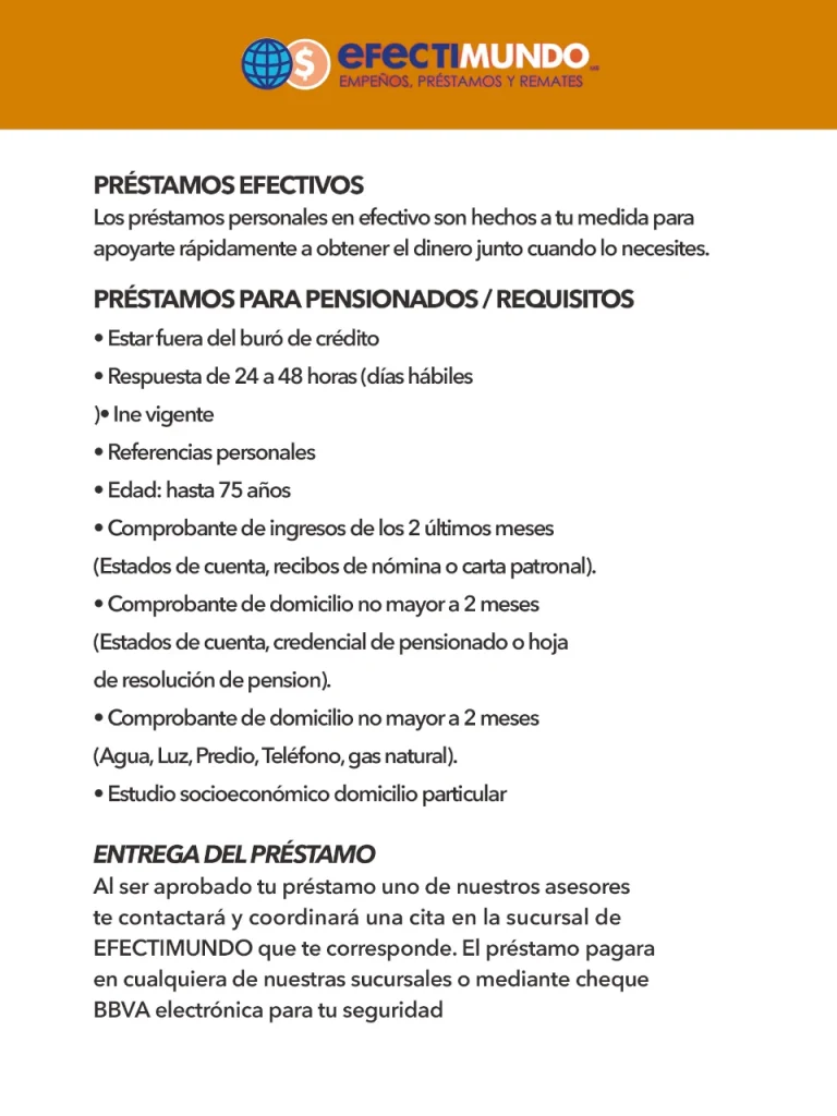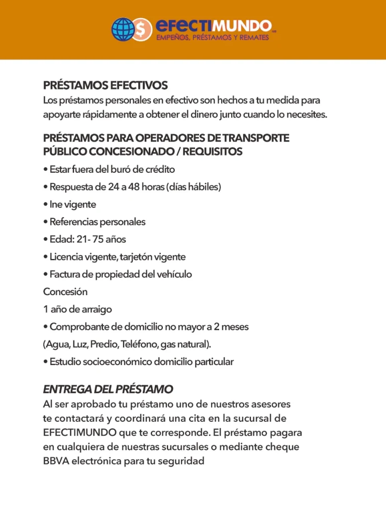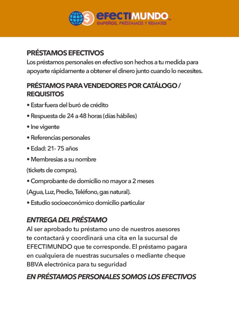 Aplica para clientes con préstamo Efectimundo activo.